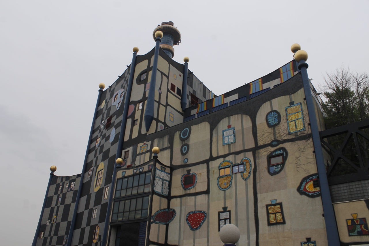 This beautiful building is covered in mosaics, artwork and gold (the real deal apparently). It is actually a waste incineration plant with artwork by eco-architect Friedensreich Hundertwasser. I dropped by to see it a little closer and it looks like a Hansel and Gretel House but not a sweet in sight. It is great to see and weird it is a working building too.Â